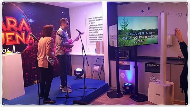 La canción se canta en versión karaoke proyectada en una pantalla de 50”.